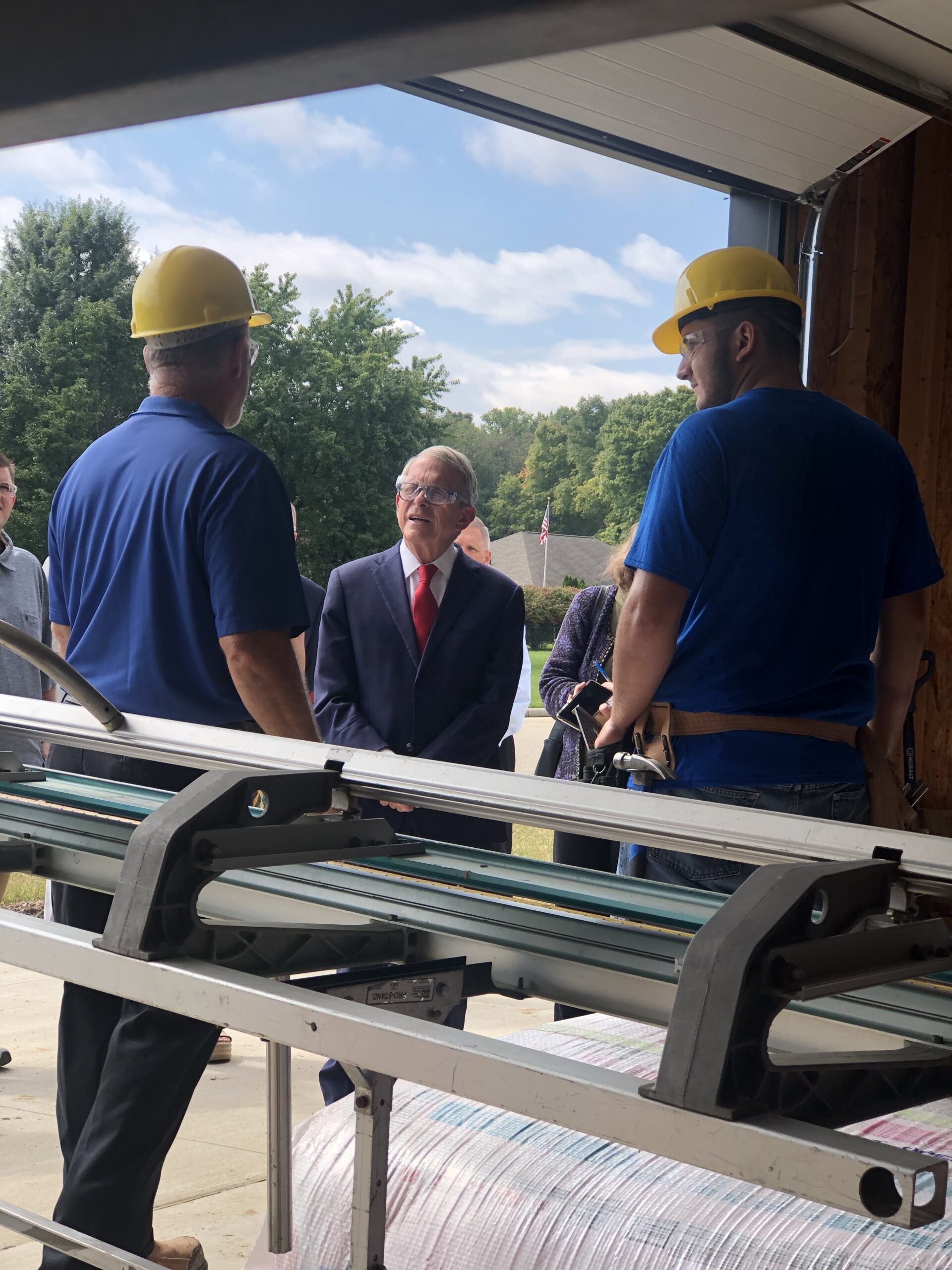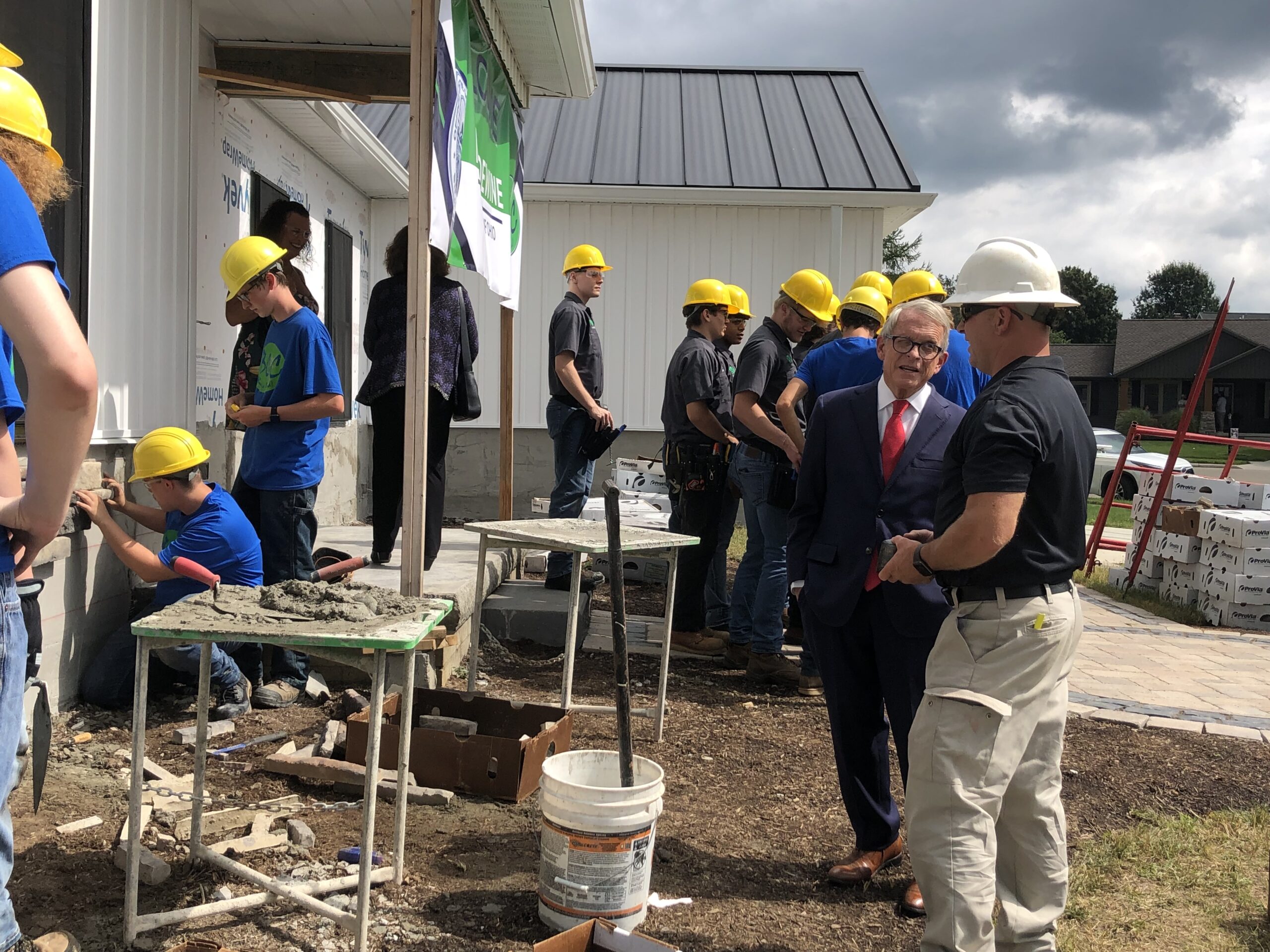 Mike DeWine’s visit included a trip to the site of the next student-built Buckeye House and the career center’s new utility lineworker lab.