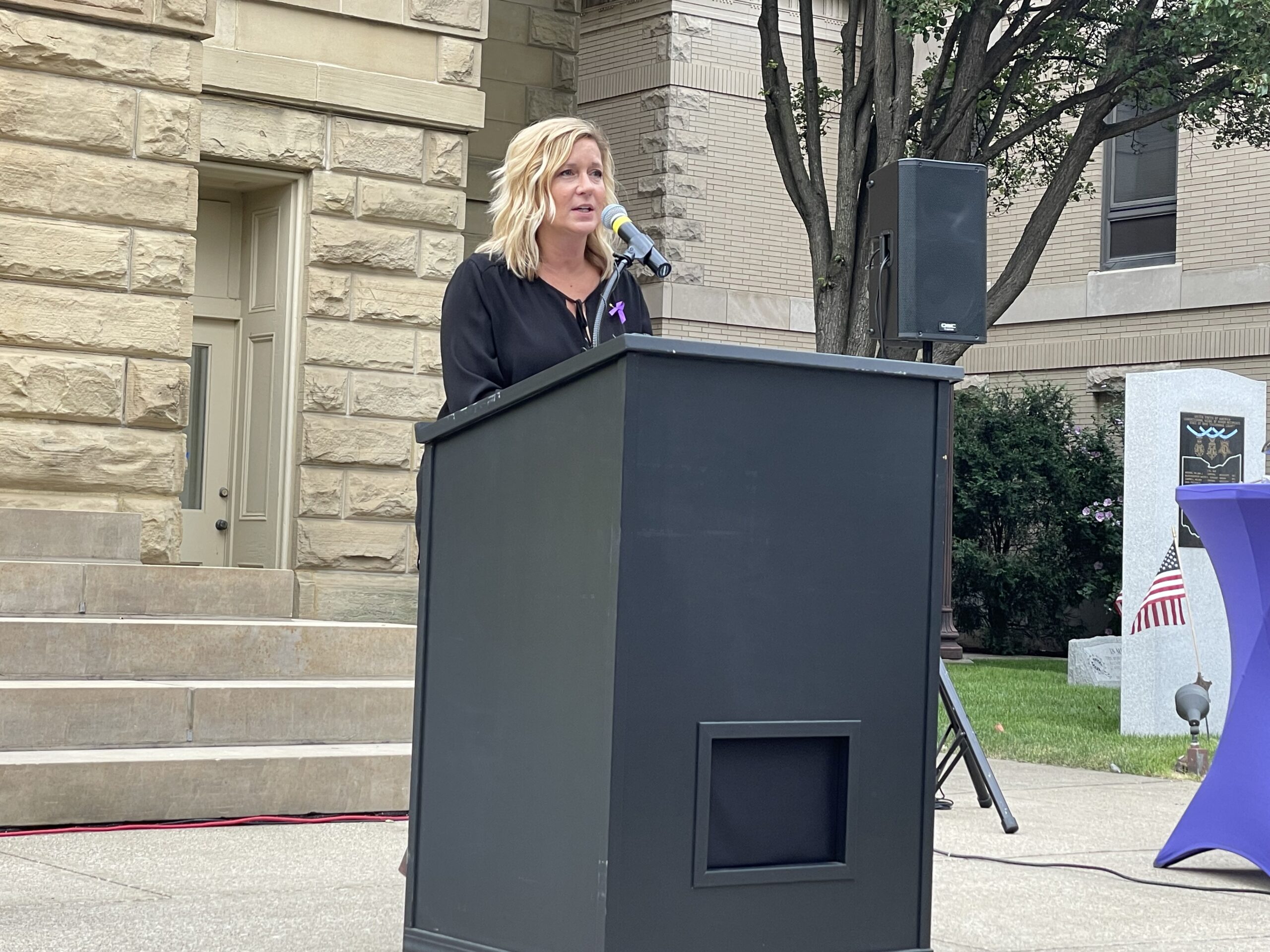 Recovery Coach Erik Fredrickson speaks during Wednesday’s Overdose Awareness Day ceremony. (WJER)