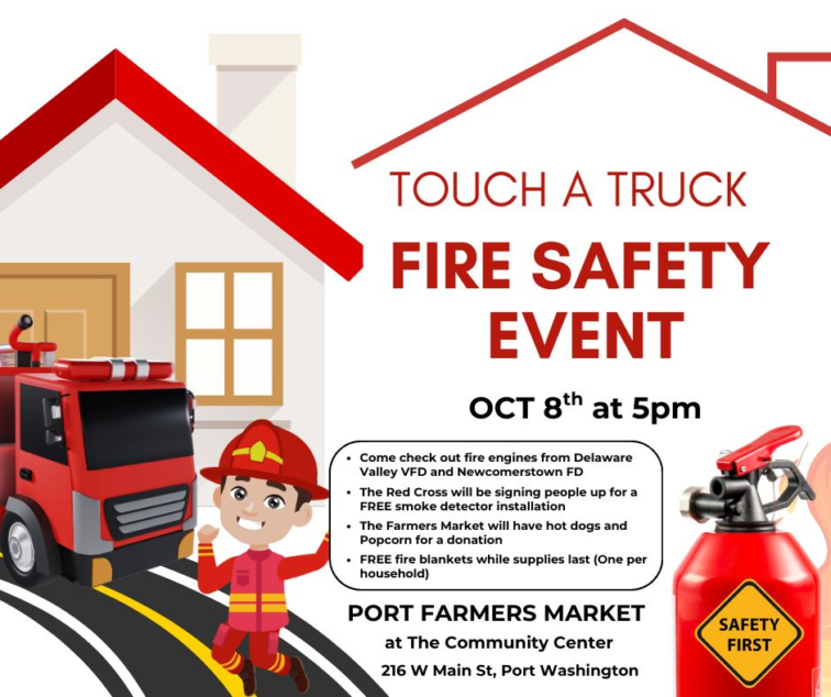 Wednesday, October 8, 2025: Touch a Truck – Fire Safety Event at the Port Farmers Market.