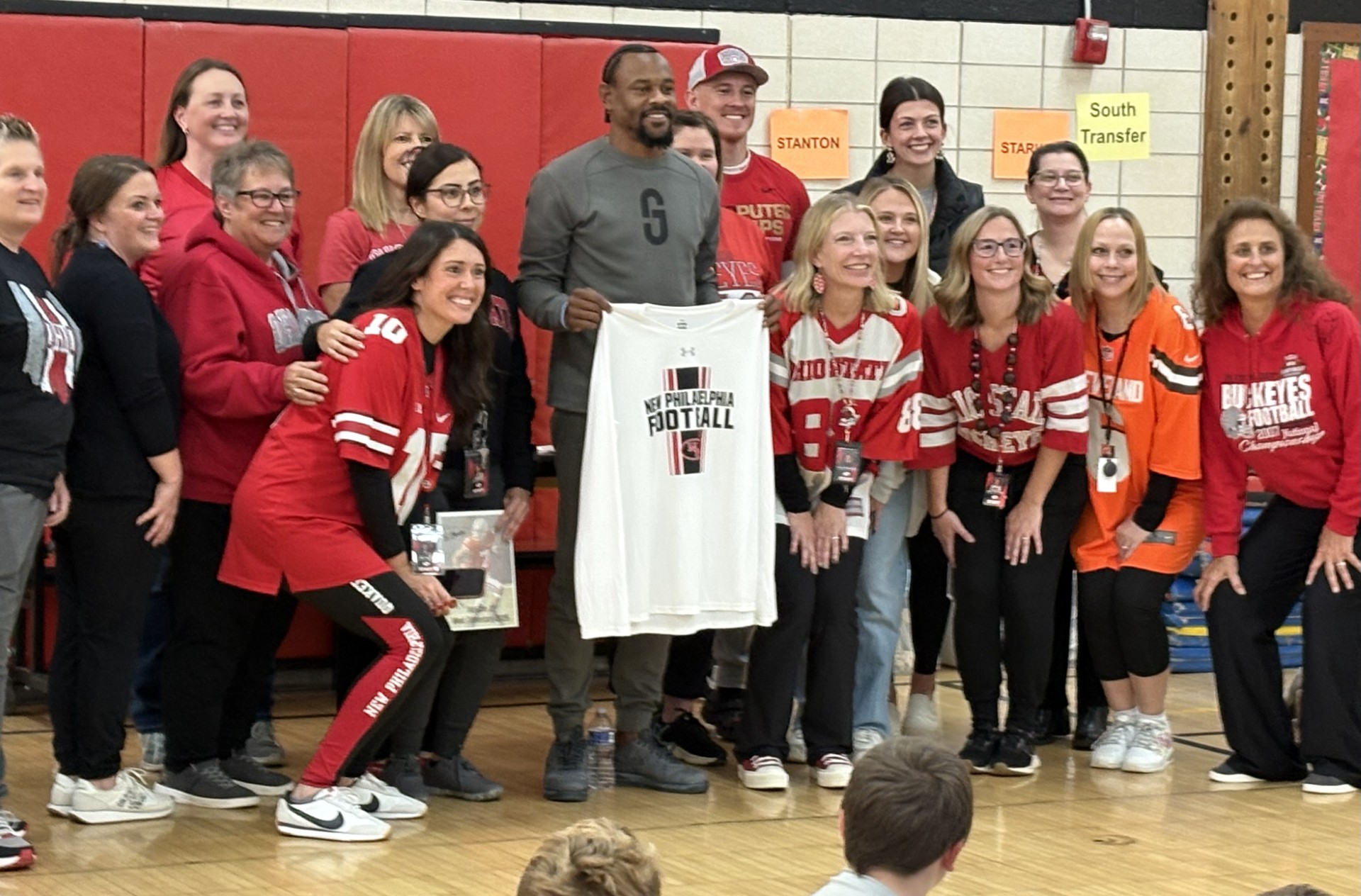 Former Buckeyes and NFL receiver Ted Ginn Jr. was at New Philadelphia’s West Elementary Thursday to speak to the kids, lead them in exercises, and sign autographs.