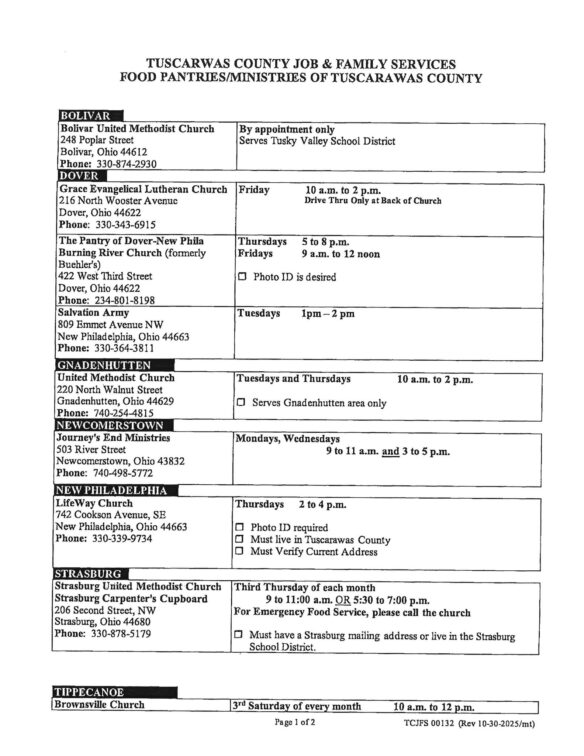 NEW PHILADELPHIA (WJER) (Oct. 31, 2025) – Tuscarawas County Job and Family Services officials say they’ve been guiding SNAP food assistance recipients to other sources as the government shutdown could halt future benefits starting this weekend.