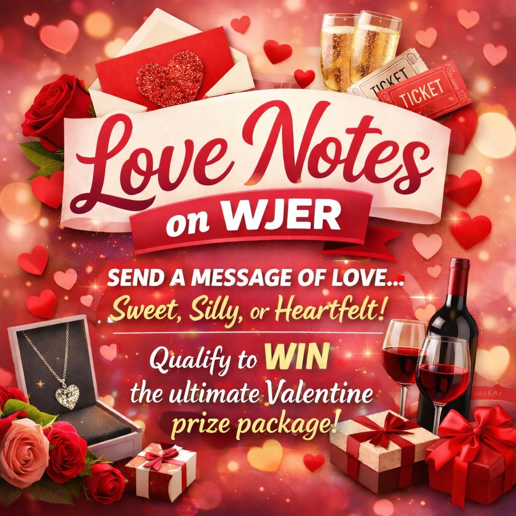 Send your Love Note – funny, sweet, or totally awkward – to WJER@WJER.com. If Tom and Michele read it on the air, you’re a semi-finalist for our ultimate Valentine’s prize package with the winner announced on February 13th!