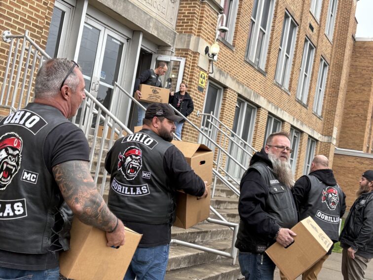 The Ohio Gorillas Motorcycle Club in New Philadelphia is out delivering full turkey or ham meals for the second year in a row today.