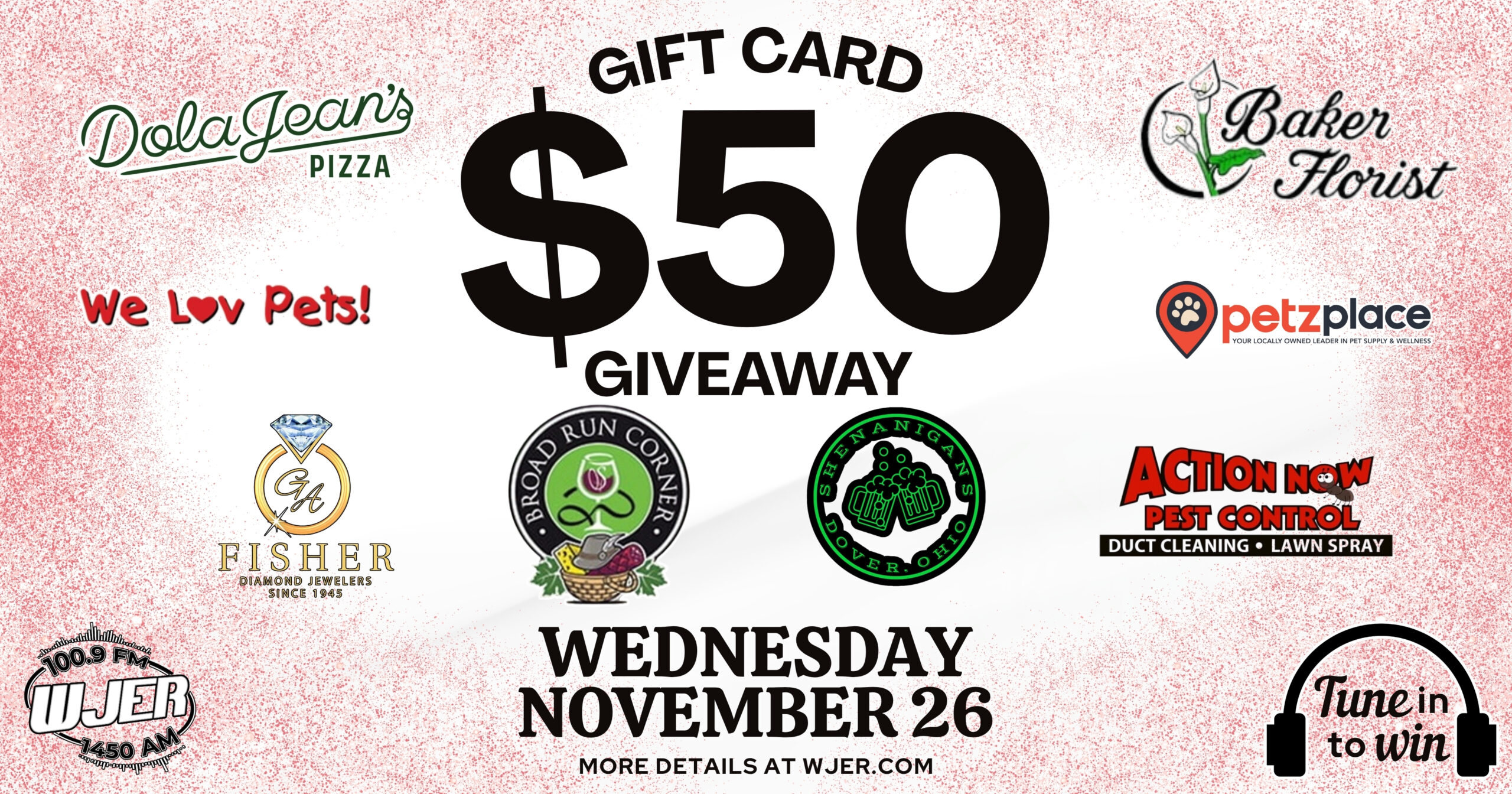Wednesday, November 26th, is WJER’s next $50 gift card giveaway!! Tune in all day for your chance to win $50 gift certificates to great local businesses. Use them for yourself or give them away to friends and family this holiday season.
