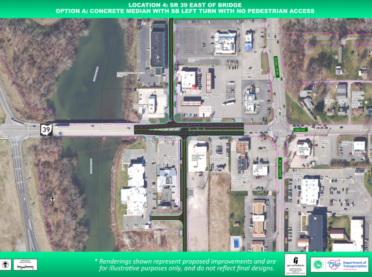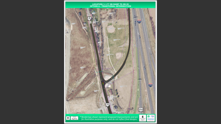 The plan, still in the conceptual stage, has nine locations for improvements. It calls for direct ramps between 77 and 250 with a pair of roundabouts on state Route 39 at Blue Bell Drive and at the I-77 ramps on the other side of the 39 bridge over the Tuscarawas River.